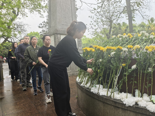随后,全体人员依次绕行烈士墓一周,向革命先烈敬献鲜花、深深鞠躬,共同缅怀革命先烈的丰功伟绩,铭记其英勇顽强的民族精神,以最诚挚的方式寄托哀思与敬意。